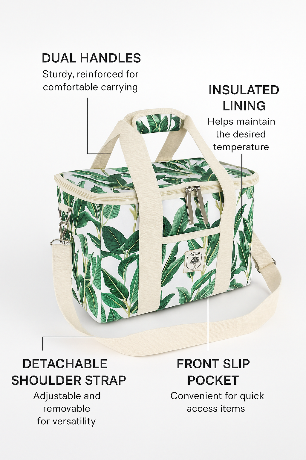 Our Good Vibes™ Deluxe Cooler Bag is a must-have for outdoor adventures! Designed in Australia, this bag features convenient carry handles and a removable shoulder strap for easy transport. With its insulated inner lining, your drinks and snacks will stay refreshingly cool. The storage pocket is perfect for keeping essentials close at hand. This spacious bag can hold 15 cans, making it ideal for picnics, beach trips, and more.