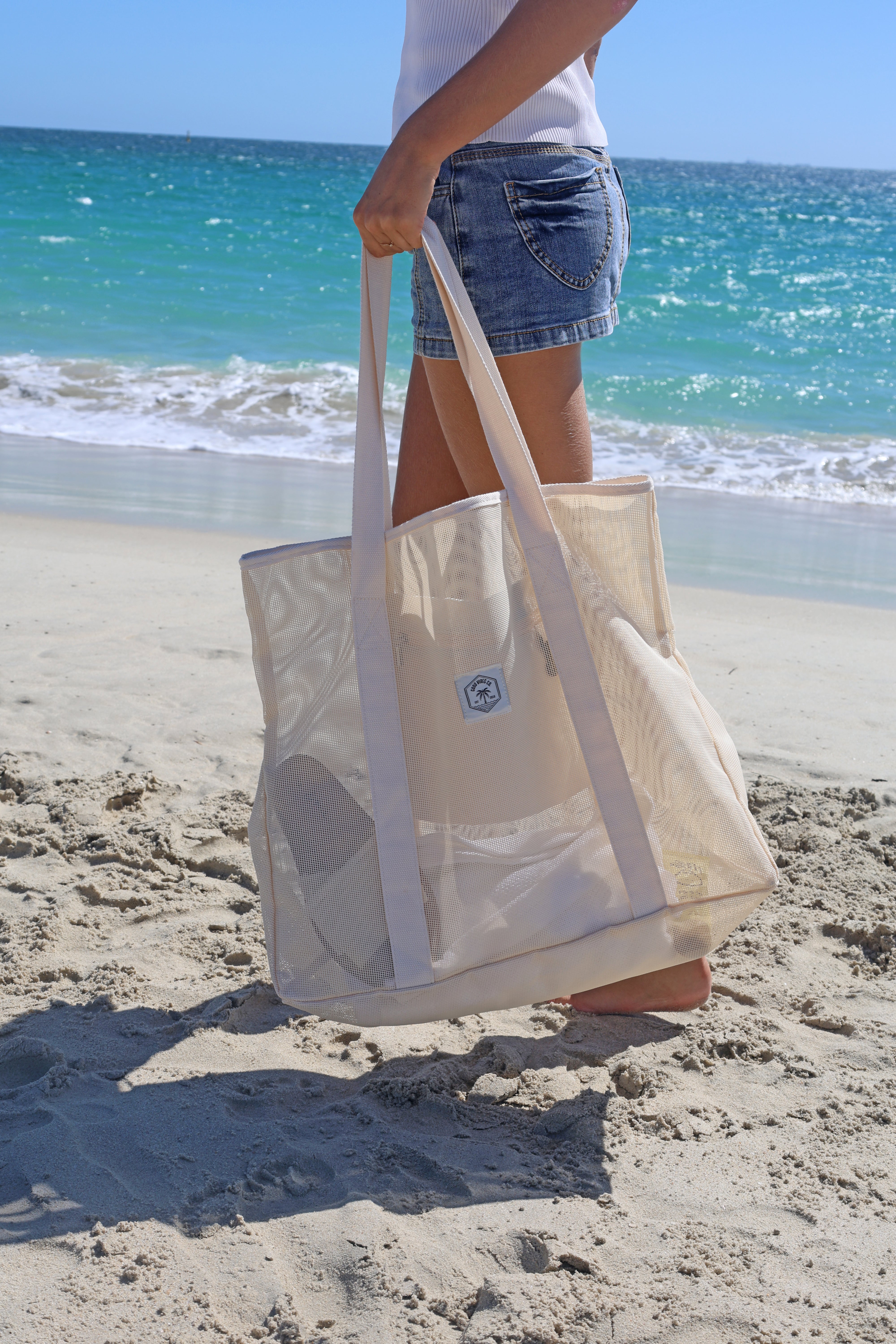 Designed in Australia, this extra-large mesh tote is your perfect beach or shopping companion. Multiple pockets keep essentials organised, big enough to carry 4+ beach towels, water bottles, toys, sunblock, shoes, sunglasses and more. The breathable design allows for easy drying, avoiding mould or mildew on your towels or wet items. Strong durable straps ensure comfort. Extra-large for your convenience - grab your Ultimate Mesh Tote Bag today!
