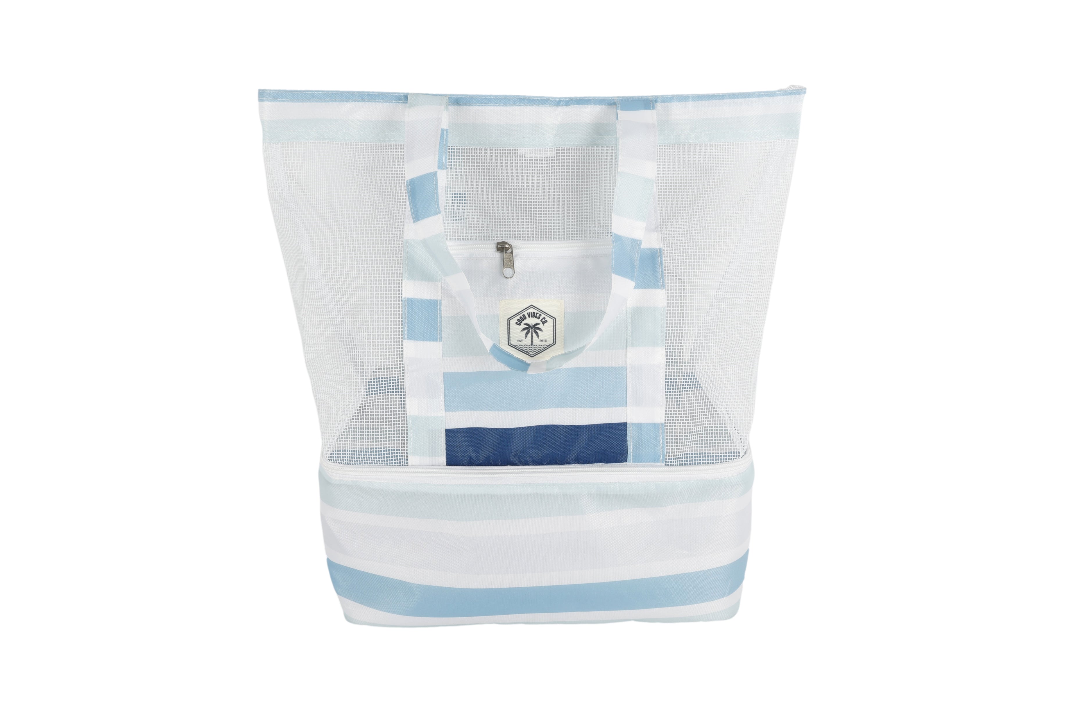 Introducing our 2 in 1 Cooler Bag - the ultimate companion for your pool or beach trips. With its cool design and convenient carry strap, this portable cooler bag is perfect for keeping your drinks and snacks chilled while also providing space for towels, bathers, and other essentials. The base zips closed to keep your refreshments cool, while the mesh top allows easy access to other items. Complete with a side pocket for keys, this versatile bag is a must-have for summertime adventures.