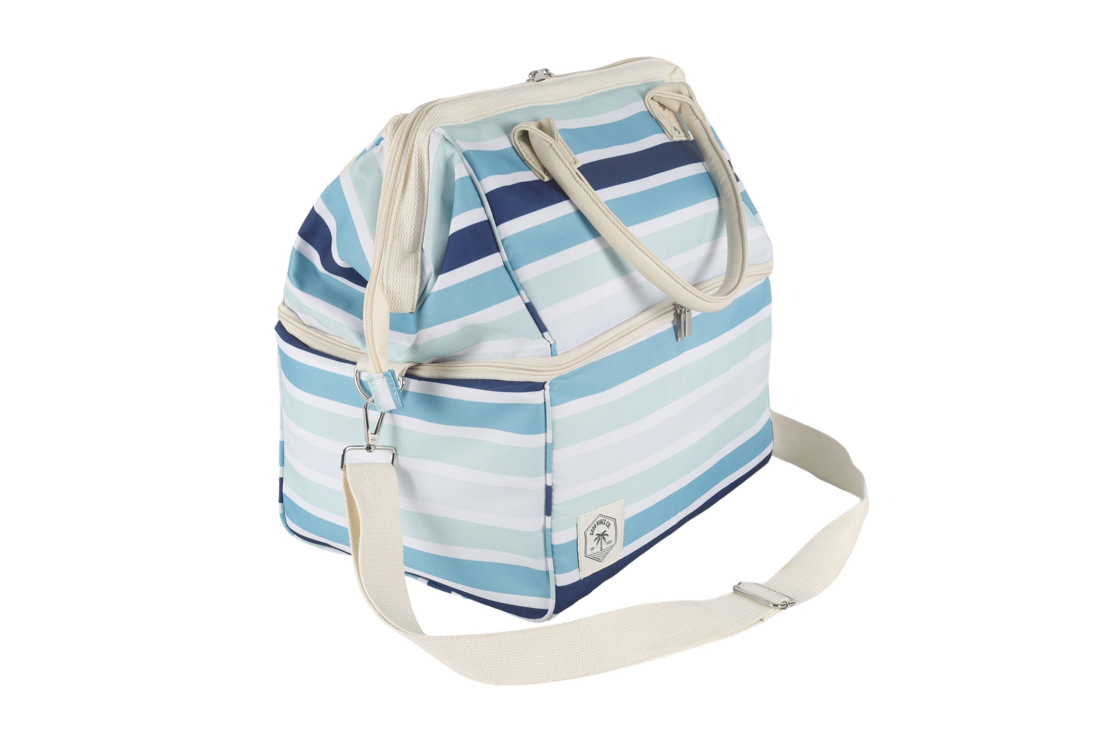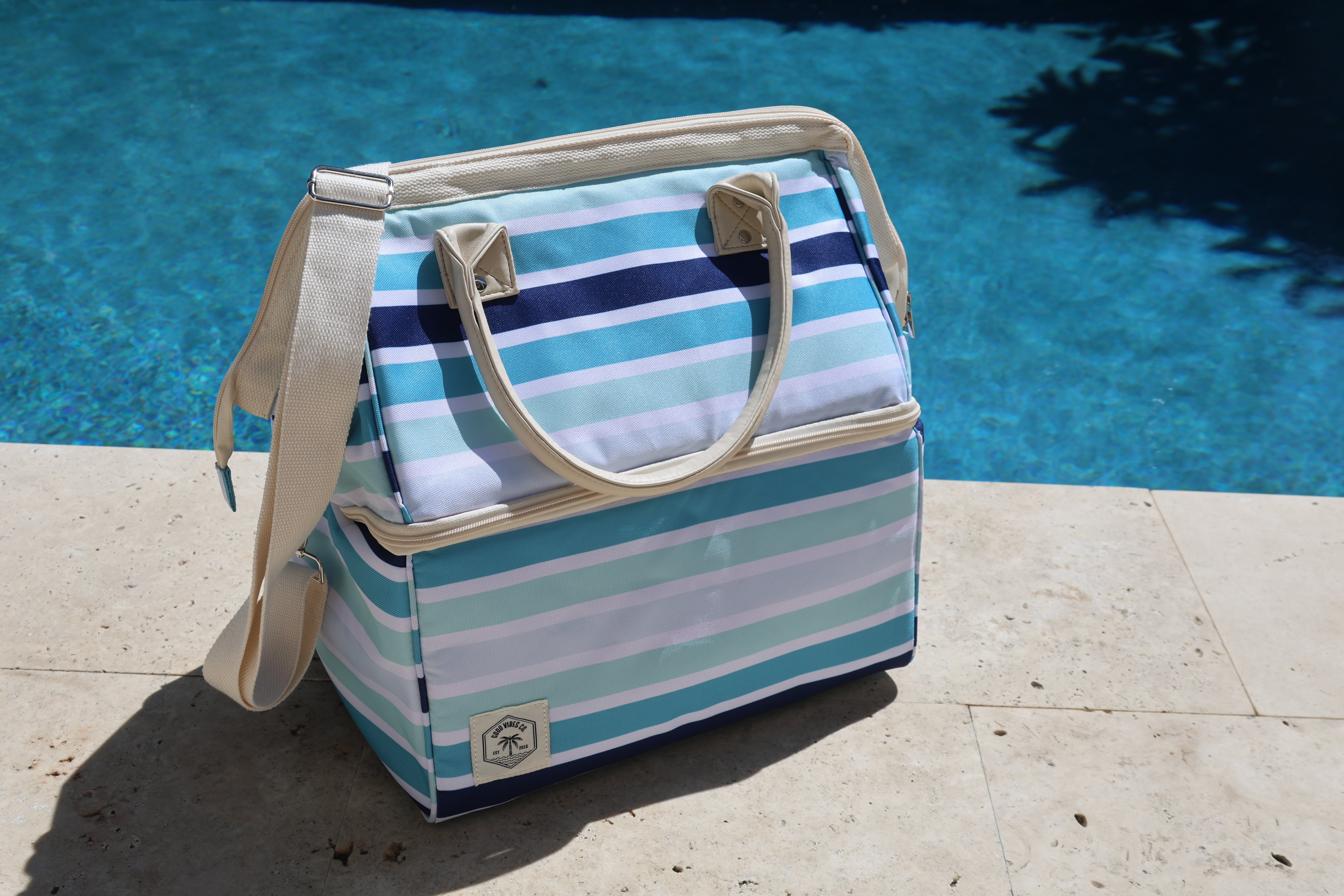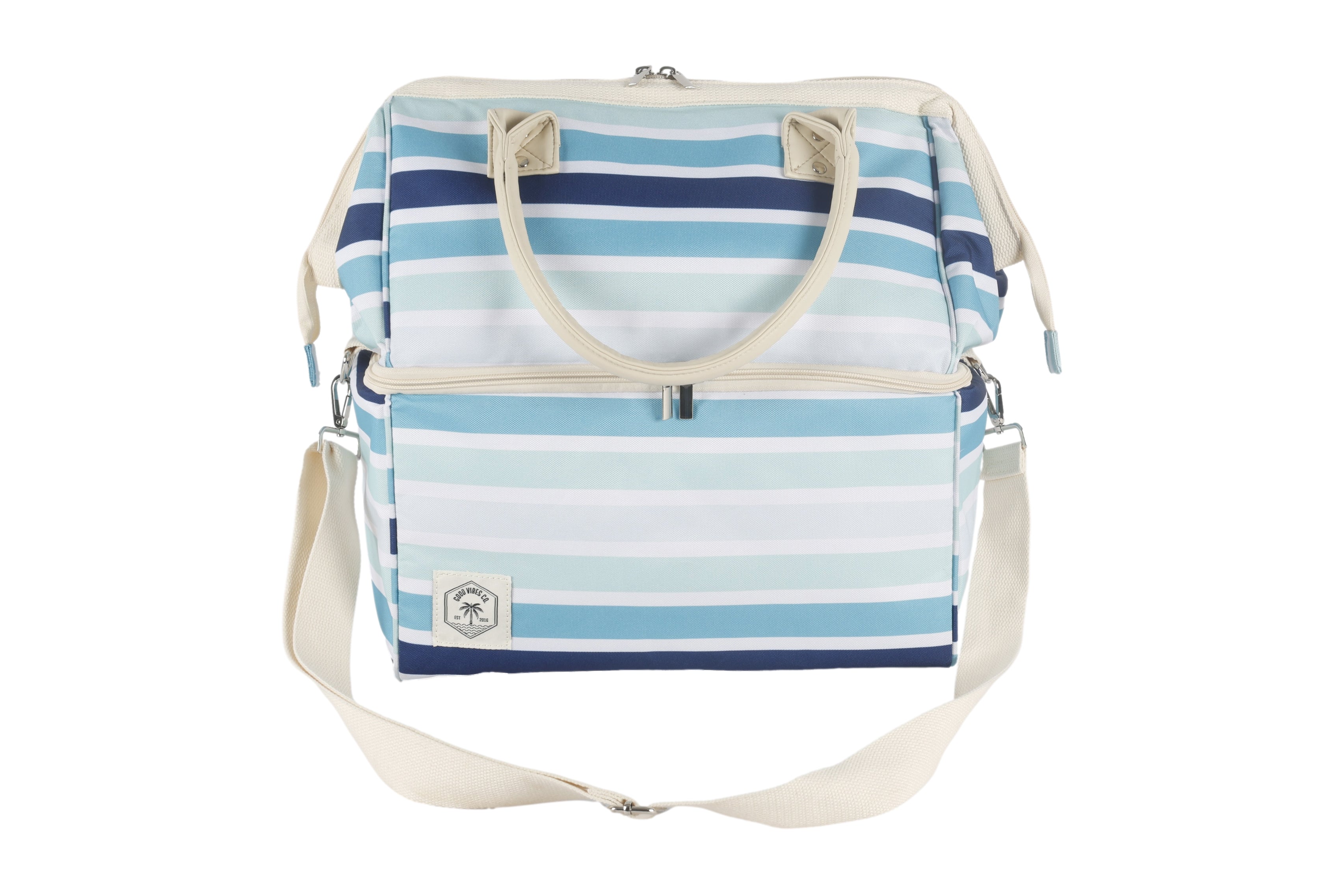 Our Australian Designed Good Vibes™ Premium Picnic Bag has sturdy carry handles and makes picnicking a breeze. It features two insulated compartments for keeping your drinks cool and your food fresh. Plus, it can hold up to 24 cans, so you'll never run out of refreshments. It also makes a great Nappy Bag for new Parents.