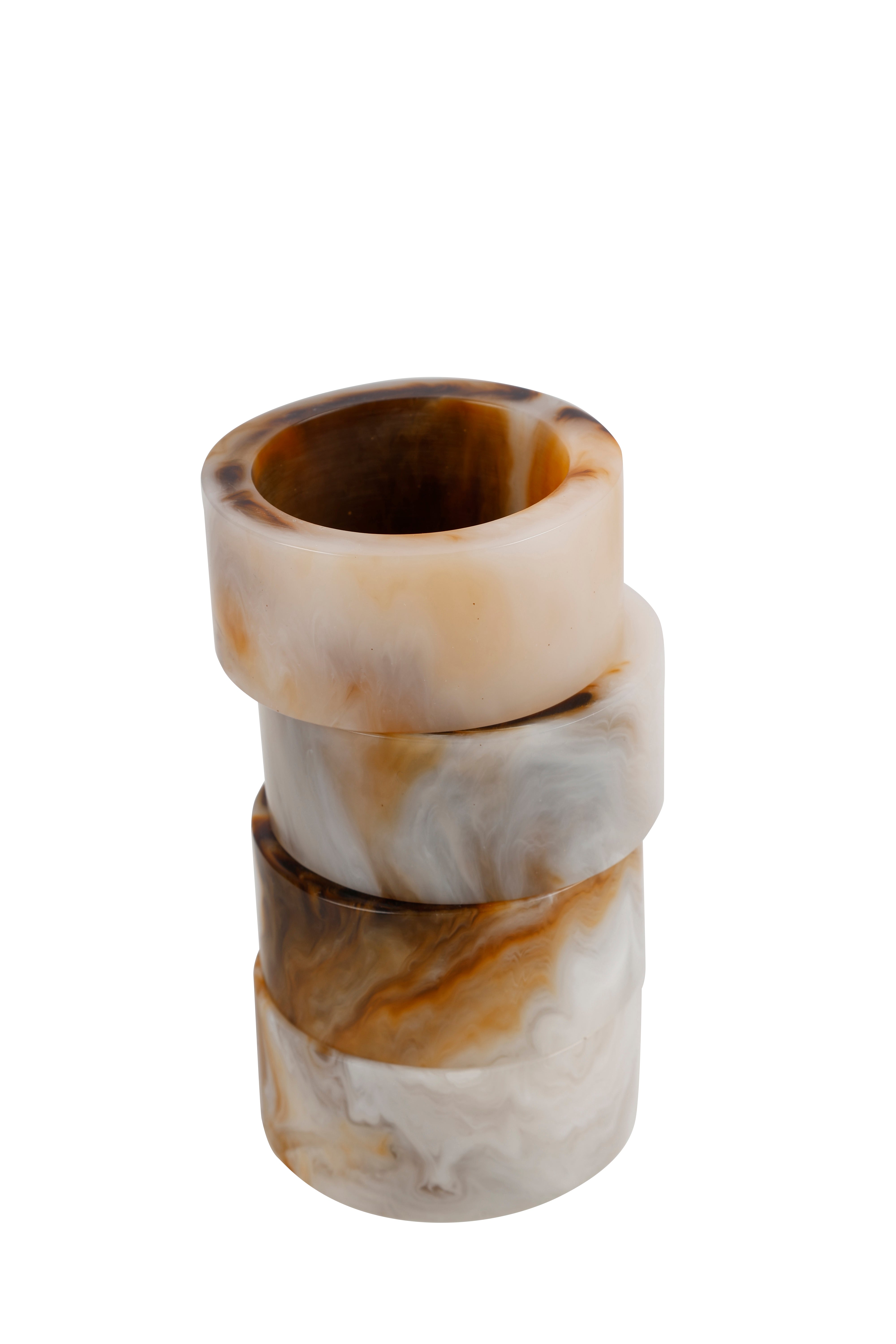 Looking to add a touch of contemporary elegance to your table setting? Our Set of 4 Amber coloured Resin Napkin Rings are the perfect addition to your dining essentials! Crafted from durable resin and measuring 6x6x3cm, these exquisite napkin rings boast exceptional quality, making them a stunning and versatile addition to any dining experience.