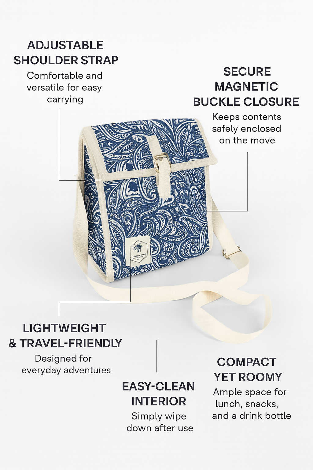 Tahitian Blue Insulated Lunch Bag, Removable Shoulder Strap, Adjustable Closure Strap