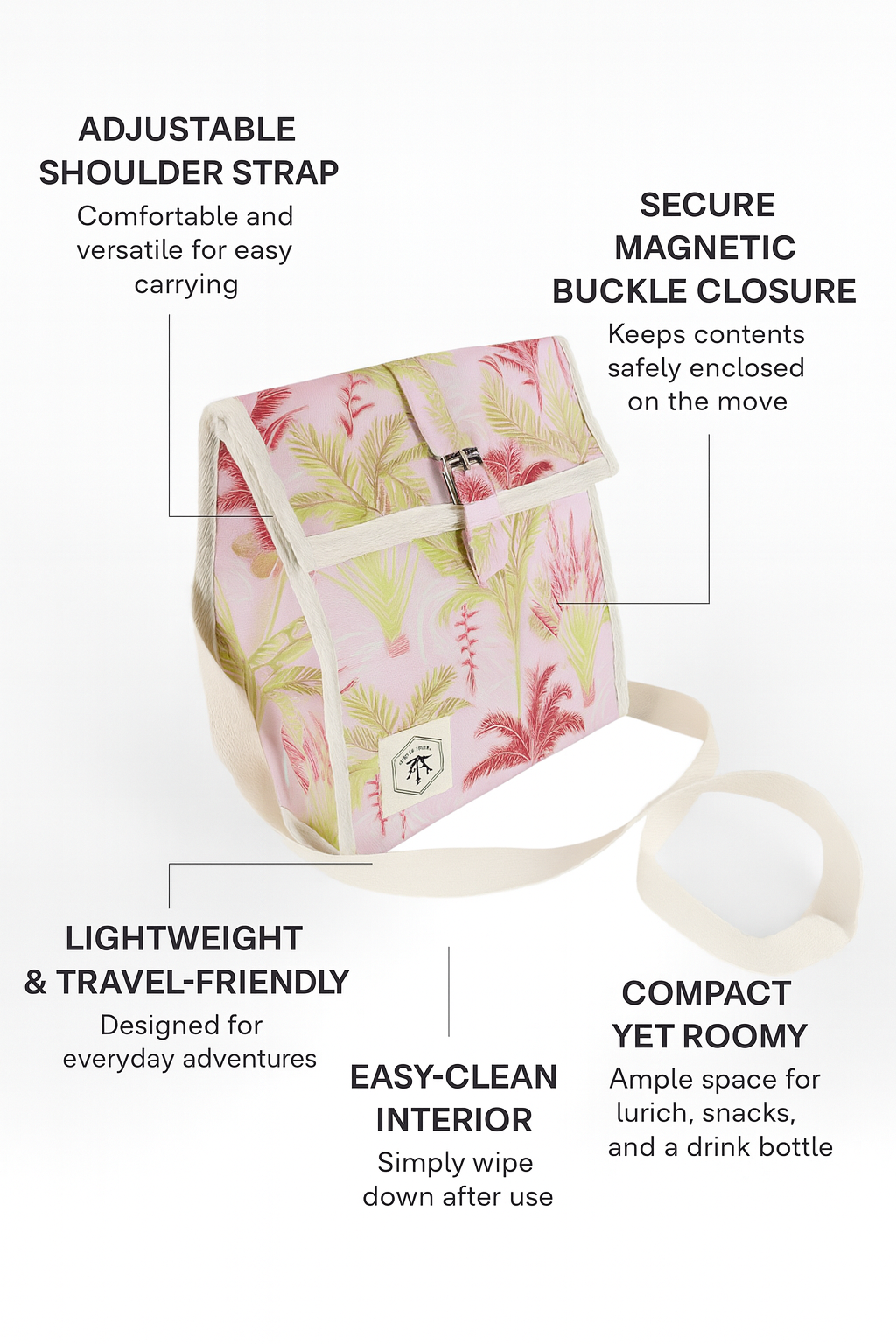 Our Australian-designed Good Vibes™ lunch bag combines style and functionality. With its adjustable strap buckle and removable shoulder strap, it offers convenience on the go. The insulated inner lining keeps your food fresh, making it perfect for lunches. Generous in size (25 x 22 x 16cm), it's the ideal companion for busy individuals.